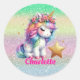 Pegatina Redonda estrella mágica del purpurina unicornio