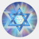 Estrella de David con la letra hebrea Shin en el centro con coloridos rayos de luz por detrás.