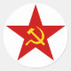 Sutil pero eficaz: la estrella roja clásica sobre un fondo blanco, envuelta en un martillo amarillo y una hoz.