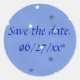 Las estrellas azules y blancas sobre fondo azul claro, con un marcador de posición para la fecha, se imprimen en pegatinas personalizados. Personalizar fácilmente el texto del formulario de plantilla. Gracias por comprar en CherylsArt en Zazzle.