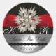 PEGATINA REDONDA ESTRELLAS DE DIAMANTE MONOGRAMA DE RIBÓN ROJO NEGR