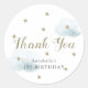 Pegatina Redonda Estrellas de oro y nubes azules Cumpleaños Gracias