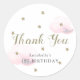 Este lindo pegatina de agradecimiento de cumpleaños presenta falsas estrellas purpurinas de oro y nubes esponjosas de color rosa sobre un fondo blanco. Personalízalo para tus necesidades.