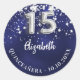 Pegatina Redonda Estrellas de plata azul marino Quinceanera