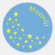 Pegatina Redonda Estrellas doradas personalizadas y azul lunar