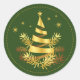 Pegatina Redonda Estrellas doradas verdes dejan árbol de Navidad
