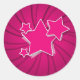 Pegatina Redonda Estrellas rosadas y fondo giratorio