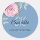 Pegatina Redonda Eucalipto floral azul turbio rosa