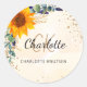 Pegatina Redonda Eucalipto girasol purpurina monograma