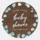 Pegatina Redonda Eucalipto ruso y Baby Shower de madera marrón