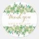 Pegatina Redonda Eucalipto Verde Dorado Escritura Gracias