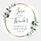 Eucalyptus Gold Metallic Wedding Favor Gracias Pegatina... Nuestro boda botánico de lujo gracias pegatina cuenta con un marco metálico de oro falso adornado con hojas de eucalipto de sabio y de color esmeralda sobre un fondo blanco y fresco. El texto "Amor y Gracias" está escrito en un guión elegante y tipografía sísmica, con los nombres de novias y novios y la fecha de boda justo debajo. Puede cambiar fácilmente los nombres y la fecha de la plantilla de personalización.