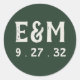 Pegatina Redonda Evergreen Mountain Forest Green White Initials