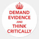 Pegatina Redonda Exigir pruebas y pensar críticamente