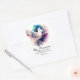 Pegatina cristiano con escritura de cita inspiradora representa una hermosa paloma blanca que vuela por el cielo, sus alas adornadas con salpicaduras de pintura azules y lavanda. Presenta un motivador Éxodo Verso de la Biblia 33:14, "Mi Presencia irá contigo, y te daré descanso".