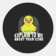 Un adorable diseño de pato de caucho que representa el proceso de depuración utilizado por los programadores. Ideal para los entusiastas de la tecnología que buscan una linda adición a su colección.