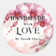 Designed especially for artisans and passionate creators, this elegant round sticker features the inspiring phrase "Handmade with Love", adding an exclusive and professional touch to packaging, gift tags, and product presentations. Its exquisite aesthetic highlights the dedication and care behind each creation, elevating its presentation to a new level of elegance.
