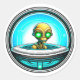 Pegatina Redonda Extranjero terrestre volando en un OVNI
