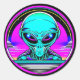 Pegatina Redonda Extranjero terrestre volando un OVNI