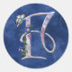Un lujoso monograma curtido "F" texturado en multicolor metalizado con glorias matutinas azules girando alrededor de la izquierda del consejo, con un colorido pero crudo azul y blanco volando para aterrizar en las flores. Este bonito y elegante diseño es un elegante monograma para los amantes de las flores y las mariposas.