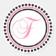 Pegatina Redonda F Monograma (Círculo de puntos rosado claro/negro)