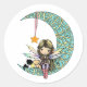 Pegatina Redonda Fairy and Kittens on Fancy Moon Whimsical Fantasy