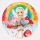 Pegatina Redonda Fairy Mushroom Paint Rainbow Chica Birday Party