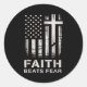 Pegatina Redonda Faith Beats Fear American Flag Christian Cross