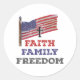 Pegatina Redonda Faith Family Freedom Cross con bandera