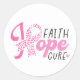 Pegatina Redonda Faith Hope Cure Breast Cancer Pink Ribbon
