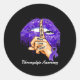 Pegatina Redonda Faith Hope Love Fight Purple Ribbon Fibromialgia A