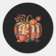 Pegatina Redonda Fall Book Pumpkin Retro Reading Halloween Teacher