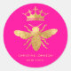 Pegatina Redonda falso efecto metálico reina abeja en rosa neón