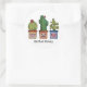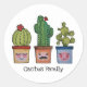 Pegatina Redonda Familia Cute Cactus En Acuarela