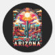 Pegatina Redonda Familia De Cactus Del Desierto Retro De Arizona