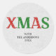 Un diseño simple y personalizado de stickers de Navidad de la palabra XMAS cubierta de diamantes de imitación rojos y verdes (¡esto es un efecto digital, no son verdaderos diamantes de imitación!). Elegante, festivo y elegante, te alegrará tus regalos, tus invitaciones, gracias o sobres de fotos o cualquier otro diseño de papel o embalaje. Personalízalo con el apellido, el año o cualquier otra cosa que quieras.