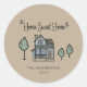 Celebra tu nueva movida con este tema de fiesta "Hogar dulce". Estos clásicos pegatinas redondos hacen sellos para sobres perfectos y cuentan con una casa de barrio y un divertido diseño de tipografía moderna. Personalizado con apellido y fecha establecida para un fiesta verdaderamente único y festivo.