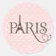 La polka rosa y rosa claro tiene un patrón de puntos como fondo escrito en París con la torre del eiffel en el lugar de la letra a. ¡moda de colores alegres!