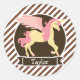 Pegatina Redonda Fantasía rosa y amarilla Unicornio; franjas blanca