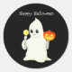 Pegatina Redonda Fantasma de Halloween y calabaza en negro