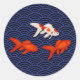 Pegatina Redonda Fantasma pez dorado en el patrón de ola de Seigaih