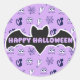 Pegatina Redonda Fantasma, telarañas y morado de gatos negros
