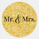 Pegatina Redonda Faux Gold Purpurina Sr. y la Sra. Boda