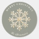 Pegatina Redonda Faux Gold Snowflake Sage Green Custom Holiday