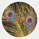 Pegatina Redonda Faux Purpurina Gold Peacock Feathers