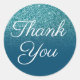 Foto de verde azulados emparejados con una oscura azul oceánica. El mensaje de texto "Gracias" en un estilo caligráfico de bonito es personalizable. azul verde azulado gracias pegatinas pegatinas. Diseño de moda de arte digital para una quinceañera, boda u otro evento especial. Falso diseño purpurina imprime como una foto.
