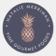 Etiqueta tu correspondencia o productos con estos pegatinas de moda que coincidan con nuestra suite de marca Pineapple. Los ricos pegatinas azules de medianoche cuentan con un falso ilustracion de piña de Relieve metalizado rosa dorado en el centro, con dos campos de texto circulando por el exterior, con letras blancas modernas.