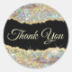 Pegatina Redonda Faux Sparkling Gold Sequin Gracias