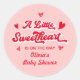 Celebra una llegada especial con este Pegatina redondo Baby Shower Favor Classic personalizado de color rosa rojo. Perfecto para una ducha de bebé con servicio de San Valentín, le da un toque encantador a las ideas de la ducha de bebé valentina y a las ideas de la ducha de bebé con servicio de San Valentín. Ideal para los temas de la ducha de bebé en febrero y para las ideas de la ducha de bebé en febrero, este pegatina celebra que un pequeño cariño esté en camino. ¡Genial para una novia, está en camino ideas de ducha de bebé y pequeñas ideas de ducha de bebé de cariño!