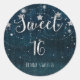 Pegatinas de Favor celestial azul plateado de Noche estrellada Sweet 16. Invitaciones a juego disponibles.